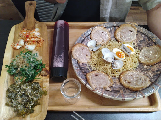 Read more商品評論是主觀的,請酌量參考即可。評分不會帶入「有機」、「天然」、「國外直送」等食材加分理由,了不起針對稀有性加分,其他只要好吃就好,健不健康我吃的當下不會知道喔! ---評論如下--- 照片:炙燒套餐 麵體的部分: 麵類有4種麵體可選,這次去只點了拉麵和意麵。 意麵就是那種油炸過的意麵,以歧視刻板的印象來評論,我覺得來拉麵店點意麵,就只是把鍋燒意麵變貴而已。當然,如果一心愛意麵的人,是不會在意這些的。 拉麵體還滿中規中矩的,不會不好吃。 湯頭的部分: 一開始不知道他的套餐是乾麵,如果要點湯麵的人,在點套餐可能要確認一下。 點的味增湯頭,應該是走鹹味增的路線,不會太鹹,但我個人是吃比較重鹹,可能清淡掛的會覺得味道有點太鹹。 其他湯頭沒有點,不評論。 麵的配料部分: 味增湯麵:湯麵裡面是沒看到叉燒,印象中真的沒有。但有23顆蛤蜊、23尾蝦,蝦子算大,至少比我在台中吃鍋燒的蝦子要大。新鮮度我覺得算新鮮,但我對自身評估新鮮度的能力不敢保證。 糖心蛋因為我太晚吃他,蛋黃被我融進湯裡,忘記他吃起來的味道了。 湯裡有看到類似燒臘店的叉燒,小小一塊。 乾麵:6片拉麵叉燒,看起來很爽,但老實說,6片吃起來有點膩。 中間的蛤蜊是另外單點的,因為沒想到是乾麵,所以才那麼突兀XD。 旁邊的小菜搭胡麻醬,還蠻ㄕㄨㄚˋ嘴的,泡菜不會到很辣,算是是小酸小辣的,也不錯。如果有點套餐,建議不用另外點小菜,兩人很夠吃。 洛神茶的部分: 點主餐加點洛神有折價,套餐則直接附。 可能我是螞蟻人又重口味,喝起來不算甜,大概就是半糖再少點的感覺。雖然他們標榜洛神蜜餞是自己做的,但這個價錢我可能會在外面買其他飲料。 豬排的部分: 畢竟不是豬排店,也就不能太苛求。懶的拍照,當時就沒拍了。擺盤還蠻有模有樣的,醬附上胡麻和豬排醬兩種。麵衣覺得小油,而肉體的部分,炸豬排裡面吃到肥肉,我覺得有點毋湯。炸豬排就不列入評分。 服務的部分:沒有特好或特差,不加減評分。 用餐環境:沒有潔癖的朋友都可以接受吧!我只對店門口的假樹覺得有點多此一舉,但裝潢是店家個人喜好,這個不列入評分。