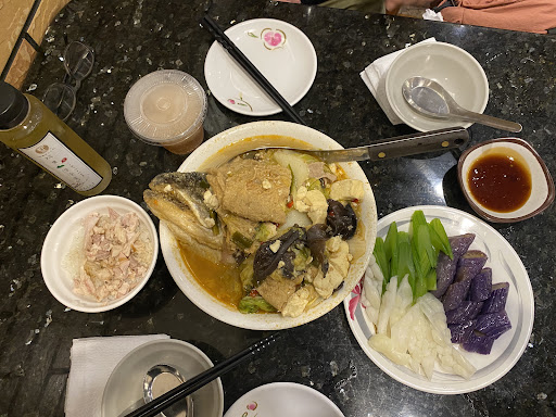 Excellent fish soup, but satay sauce is an ingredient in the soup. That’s not to everyone’s taste, but I like the slightly sweet and spicy taste. We ordered the soup with fish head for 2-3 people, it was perfect for the two of us, we were feeling full when we finished. But then a lady came around, and they refill the soup! That was great but we couldn’t finish the refill, it was a bit too much. The turkey rice is better in other places in this city, the local signature dish. Veggie combo is randomly selected everyday so you never know what you’ll get. We got eggplants, bitter melon, and celery with a dipping sauce. We got a sour plum ice drink and it was perfect in this hot weather. I’ve ordered this soup to be delivered to my place in Taipei, that cannot compare to eating it fresh in this restaurant. Even though the queue was quite long (we had to wait around 50+ numbers at 6:30pm) but I think it’s worth trying. I would recommend it to anyone...