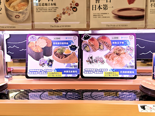 Read more因為小孩想要動漫活動的周邊才去吃的!屬於半自助式的用餐環境,按號碼單安排自行入座。 提供的不是茶包,是茶粉,粉需要攪拌才好完全融化,但找不到耐熱的攪拌器具,雖然現場有提供塑膠湯匙,但因不習慣用塑膠湯匙接觸熱物,所以將就著喝。 每桌都有平板可供點餐,後續直接由輸送帶送到位置,很方便快速;種類算是很多樣化,也有麵食跟炸物,帶小孩、不適合吃生食者、也有其他飲食選擇,覺得還不錯。 小缺點是~盤子價位種類有點混亂,有些盤子顏色不在種類清單上,所以必須自己記得點了什麼食物,雖然最後結帳時會再跟用餐者確認,但…說真的,吃了幾十盤的東西,要再去回憶這盤點什麼、那盤點什麼……有點困難,所以店員說是多少錢就多少錢,也沒太計較細節(我自己有事先大約估算費用)。對於喜歡明確的人而言,這樣的感受就讓人覺得安全感不足,店家可以用標籤或是其他方式事先標明,我想會是比較好的方向。 對了,後來才得知有特約停車場跟停車優惠,但我們剛好沒停在特約的那裡,所以有點扼腕啦~ 價位~覺得高那麼一滴滴,都採自助式了,餐巾、湯匙、杯子都自取,人力成本減少,但...