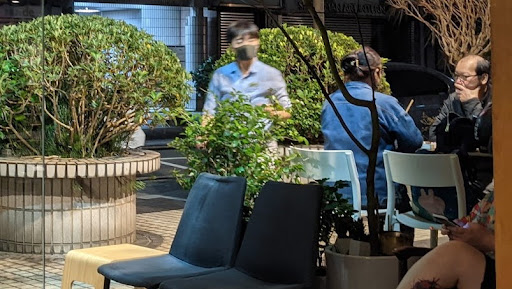 I asked if it was possible to move from the table right next to the door and the server offered a much smaller table. I asked about a similarly sized table in the middle of the cafe and she said that because they keep windows open, the smell of cigarette smoke would probably be there too.