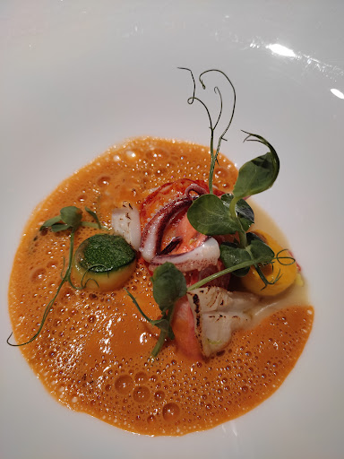 Beautiful plating of the food (five stars) and good technical cooking skills (five stars). The service was good (four stars), but the whole experience was boring. Then neighbouring table was watching baseball on the smartphone. Most of the food was bland, not enough flavour compared a Michelin restaurant in France. I am not just talking about missing salt. The caviar did not taste anything when it was mixed with the other ingredients, and the truffle was totally tasteless even by itself. East Asians really like token fancy ingredients (e.g. caviar, truffles, lobster) so I can understand the chefs thinking. The lobster was cooked to perfection, but the sauce was bland. How can you make bland stock when you have a lobster shell? After three dishes you want the experience to be over. The duck breast was nice and cooked perfectly. Gazpacho was nice but the clams did not taste anything, when combined with the other ingredients. Palate cleanser with tasteless foam. Microscopic pieces of cheese. Bread was free flow and nice but nothing special. First, I had high expectations that it might be an up-and-coming place, but not true. More like overflow from fully booked Michelin stars. Net 5.700 per person.
