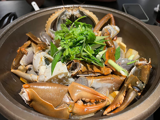 The hotpot broth is overly seasoned and extremely salty. I love pepper but the pepper flavor in this broth was so overpowering that I could barely taste anything else. We saved all the crab roe for the porridge but it was so insanely salty that we couldn’t eat any of it. On top of that, service was terrible. They seated us in a semi-private area and never bothered to check on us, so we had to keep running out to the main dining area to flag down a waitress whenever we needed something. The waitresses also did not bother to serve us any water throughout the meal.