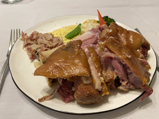 My companions had a beautifully cooked steak and excellent crispy pork leg perfectly cooked. The pork came with a side of sauerkraut that I will go back for !