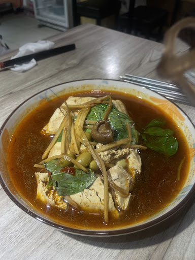 百茹羹湯是冷的,把所有的茹類切的很碎,0.5*0.5cm. 整碗湯都是醬油加水+勾芡的很厲害,用湯匙無法撈出茹. 超生氣的當下很想不付錢.或是叫警察. 但是我唸了老闆一頓.說,我跟15桌的同時來的..那男生已經吃飽走20分鐘了, 對面的中年婦女比我晚來15分鐘.蒸豆腐 跟我同時來了. 我問老闆,點了二樣,不能先上菜一樣嗎? 老闆說想要同時上菜..傻眼..我在那餓肚子,等同時上菜,湯是冷的,豆腐很燙.只是多點一個湯.然後豆腐有加了王子麵而已 .整個過程 等了30~40分鐘. 吃buffet 都吃飽了..
