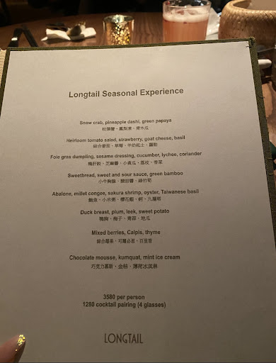 Read moreI’ve been looking for an opportunity to come to Longtail for a while and was really excited about coming here for the first time. The restaurant concept and cocktail list were really intriguing.