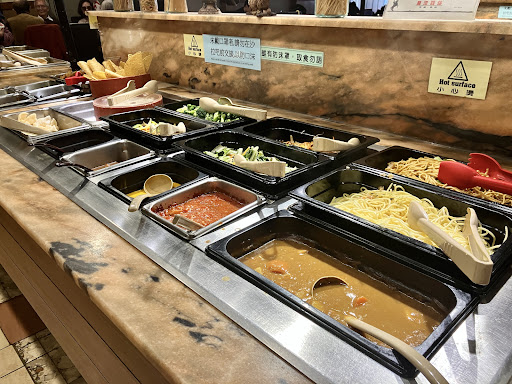 My review is for the Ponderosa Steak House located in the Taipei New Horizon Building. Knowing the "culture" of buffets in Asia where I have lived most of my life I should have known better. My friends and I were going to Eslite Art House Cinema on 3/13/2022 which is in the same building. The choices are slim either a tea house which does not take reservations or a food hall (which I love) but is packed the minute it opens especially on a Sunday. The place was full at 11 am for lunch so thankfully I had made reservations. Their policy is ridiculous as you need to pay in advance, even what type of steak you plan to order, and you are not seated until your entire party has arrived. I said NO WAY and was seated. The serve yourself unlimited buffet was soups, salads, fruits, hot foods, desserts and beverages provided you can get near it. The "culture" is to pile up your plates as though it was The Last Supper. You must wear a mask and plastic gloves which I respect but hard to manage if you are lucky enough to get any food. The refills are slow in coming some with labels others with no labels and if you are lucky to find a bowl or plate to put your food on even better. Guess the dishwasher was broken or his day off. Now for the steak. We all ordered filet beef to be medium pink inside no blood as that is the way to order filet beef. What we finally got was over cooked black rocks that only a dog would eat. The service was atrocious, the dirty dishes were piled up on tables (some people were reusing their soup bowls and dinner plates for deserts) and a bill for ntd$2000. After the movie we passed the restaurant and the line to get in was all the way back to the bathrooms and elevators. Good luck people and off we went to Mc Donald's for a happy meal which was far better than anything Ponderosa...