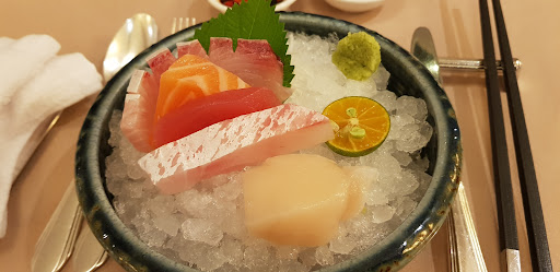 The set was very "Japanese" as we had shasimi as opening dish. We can taste the freshness of the fish shashimi. We than had the not so fresh grill prawn followed by abalone but think it was overcooked. Than came the scallop but not so fresh and taste so so only. The tempura squid served was oily. The chicken soup served hot but came with the skin that spoilt the taste. The vegetable spinach and prawn fried rice was plain. The desert of fruits and ginko nuts was not what we expect of high end dining standard. For the price we paid, its a miss match.
