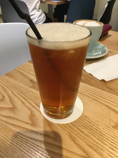Read moreThe air conditioning is slightly too intense, so definitely not a good idea to get an icy option here. The seats arranged around the center pillar is a, I would say, riveting, approach to interior design, although posing as a nuisance when you have to share a single table with other 9 patrons and you might even sit besides the pillar, which is relatively narrow and motion-restricting. The food is about okay, but they do have some plating-pandemonium going on, the salad, which is put on the same platter as my bread, had its dressing travel across the plate and soaking my bread, an uncalled for but totally predictable outcome, what do you expect when you position bread and salad on the exact same surface? Price is a tad bit too expensive, and they do have a minimum consumption of a drink(meaning ordering a meal still won't fulfill the requirement, you have to get a drink). The bathroom was tidy, apparently...