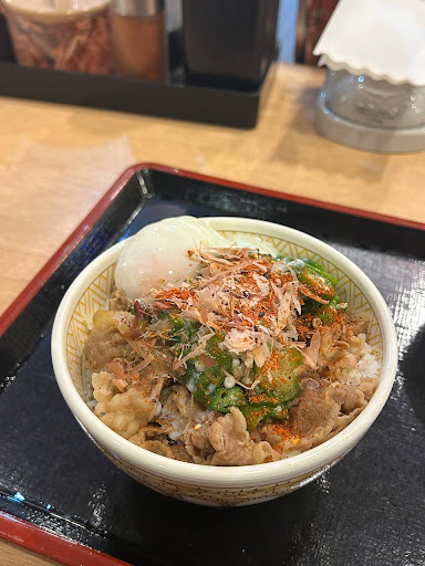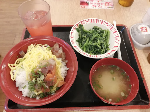 It was our first time ever to try Sukiya, I'm aware that they're a chain known in Asia, but let's just talk about my first time experience. We went in not sure what to do, as there were some people lining up and immediately asked if we're dining in and led to the dining area with tiny table for two, just noting it because we're used to big tables in the USA. I just asked the friendly locals about how to property order and they were more than happy to teach me. Once I figured that out, I studied the broad range of colorful menus, I love those types. It's all in Chinese and thankfully I can read, but it's harder to translate them to English for my family. Anyways, I chose Seafood poke bowl with 2 sides of miso soup and sautéed greens. My kid got wide eyed and forgot she wasn't hungry when she saw the miso soup and said, that's the best miso soup ever! Needless to say, I ordered another cup for her. My seafood poke bowl may not seem much but the flavors are amazing, best Poke bowl ever and I ate all of it! ❤️. Then I proceeded to order (mind you, the guy named Curry had been asked few times to update and add to our dine in order and lastly a to go order for chicken curry for family since I know it would be delicious 😋. Never heard a bad thing from the server, he's just happy to serve everyone! ❤️ Now that's what I'd call excellent service...