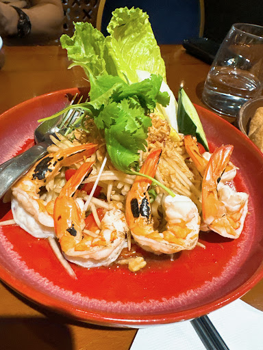 Pros: shrimp crackers at the beginning of the meal were really delicious, would've ordered more if we could. Cons: The order and time between dishes was too long for how pricy the dishes were. Our first three dishes were served rather quickly followed by nearly 20 minutes of inactivity (we assume it may be a delay caused by the large amount of Ubereat orders this restaurant takes), then after our complaints the final three dishes were served in an orderly fashion. The green curry chicken was especially disappointing as whenever you order curry, you expect the curry to at least cover the chicken, however this dish came with minimal curry and some wildly odd vegetable choices of chickpeas and very hard to chew string beans. Our six dishes came out to a total of nearly 3600nt, at that price, anyone would expect above average service and delicious food, but for most of our dining experience the food was either overly covered by the strong chili flavor or just lacking in the bold Thai flavors.