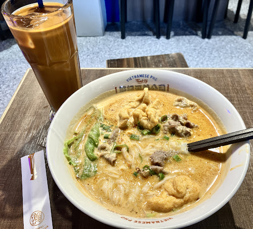 My group ordered: —Satay noodle soup - very standard sacha flavor, best value at 140 TWD compared to all other dishes. —Tom Yum noodle soup - very standard tom yum flavor. —“Lemongrass” chicken rice - no lemongrass flavor at all. Chicken was not grilled, rather boiled. Tasted like it was trying to be Hainan chicken rice, since it was served over a cabbage salad with nuoc cham. —A1 special pho - very salty broth, not much beef, not worth the cost. —Chicken salad appetizer - not much chicken, standard nuoc cham flavor. —Tapioca and red bean in coconut milk dessert - probably the dish I enjoyed most, worth it for 60 TWD but it is mostly jelly, almost...