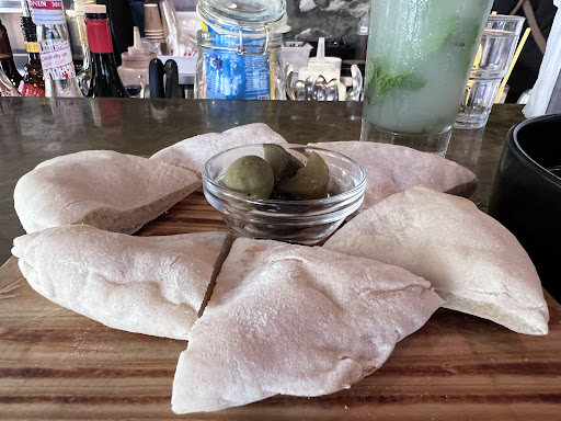 so i got the lemon 🍋 fizzy drink & hummus Baghdad -- which allegedly spicy but i felt no heat