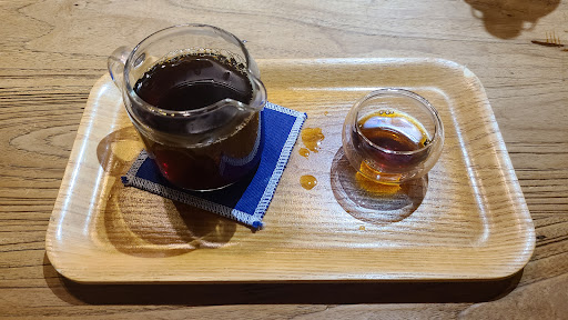 Read moreHad a fantastic experience tonight. I strolled in with no expectations and was blown away. The staff was very welcoming and guided to a seat. Despite my broken mandarin I was able to order a hand drip coffee. I watched as the barista carefully made the pour over and tasted it before approving the carafe to be sent over to me. The Ethiopia G1 was delicious and the notes were just as described fruity, vibrant, and juicy. I wanted to try a cup of the house blend beans as well but apparently that is for espresso only. Perhaps the barista took pity on me because gave me a cup of something on the house. Unfortunately I was too late to order an espresso because earlier I saw him methodically take off the hopper and store the beans and clean out the espresso grinder. 10/10 experience, even more so being at 11pm. I'll be back tomorrow morning to grab...
