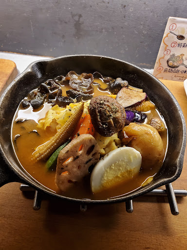 Read moreSuper, super delicious curry! The broth is indeed thinner and soupier but not less flavorful by any means. Higher priced for Japanese curry which is very common in Taiwan, but this is more unique and also very high quality ~ today I tried the mixed vegetable curry ($240) plus medium sized grilled cheese rice ($30) plus 10% service charge brought my total to $297. The cheese rice is nice but the melted cheese hardens and cools quickly and isn't super flavorful so dunno if I would get it again. However the curry soup is INCREDIBLE - super flavorful, perfect salt level, and the spiciness is real (I got level 4 out of 5). It burns but it's so, so good 🌶 🤤 would come again! I know the beef tongue flavor is very popular and the shrimp looks good too. Two flavors for vegetarians and many others for omnivores including many different optional appetizers and toppings from fried garlic chips to chicken to eggs to...