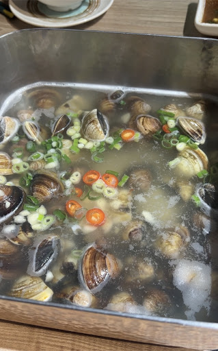 這家的湯底是相當有層次的,第一煮是蛤蜊原味的清甜,完全是蛤蜊的精華濃縮;第二煮是加了蔬菜,多了青菜的甜味;第三煮是涮肉片,多肉的香味,第四煮是熬海鮮,把大海的鮮味都融進去了!每個階段的湯都不一樣 🤤