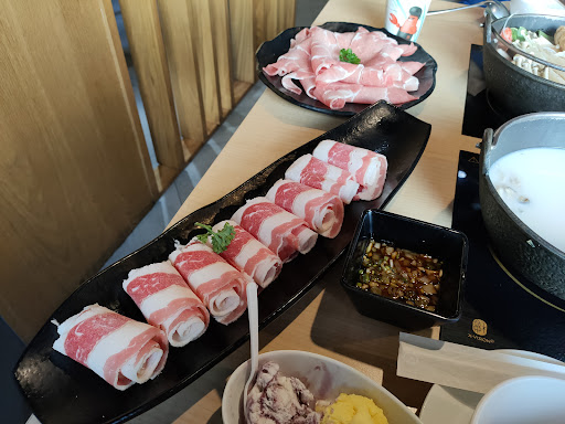 適合2-6人的個人火鍋,不管平日或假日都強烈建議先訂位! ⠀⠀⠀⠀⠀⠀⠀⠀ *🔸菜盤很有誠意,看起來豐盛不單調,很多種蔬菜和鮮菇,也有一點的火鍋料 ⠀⠀⠀⠀⠀⠀⠀⠀ *🔸最後還有16種口味的明治冰淇淋吃到飽 ⠀⠀⠀⠀⠀⠀⠀⠀ *✏️下次想來吃海鮮火鍋套餐系列 ⠀⠀⠀⠀⠀⠀⠀⠀ *📌賣牛肉、雞鴨、海鮮、豬肉、羊肉、海陸雙拼火鍋,價格在$280-$1380間,一班肉品價格親民且套餐內容豐富 ⠀⠀⠀⠀⠀⠀⠀⠀ *📌點餐方式:選鍋底→選套餐的肉品→選附餐 選各種口味湯底,加購價格不同 和風豚骨和石頭湯底→+$10 川味、鮮菇奶香、韓式泡菜→$60 老佛爺御膳、椰香叻沙→$80 麻油雞、花雕雞→$100 ⠀⠀⠀⠀⠀⠀⠀⠀ *📌火鍋附餐:飯、烏龍麵、冬粉、泡麵、有雞蛋和蒸煮麵→任選一種 ⠀⠀⠀⠀⠀⠀⠀⠀ *📌澳洲板腱牛肉鍋💰$300 菜單會標示某些肉品為重組肉,本項牛肉非重組肉 ⠀⠀⠀⠀⠀⠀⠀⠀ *🔸肉片切得較薄,輕輕夾起幾乎微透光,因為薄度關係,肉片吃起來沒有厚度的嚼勁感,煮完又會些微縮水,但一盤排成花狀的肉量頗多,整個套餐會吃得很飽 ⠀⠀⠀⠀⠀⠀⠀⠀ *🔸一般湯底喝起來味道清淡,整體吃完回家不會口渴,這優點值得嘉獎 套餐的菜盤超豐盛誠意很多種蔬菜和鮮菇,像是杏包菇、鴻喜菇、嫩香菇,當然也有一點的火鍋料,但和其他火鍋店相比,比例相對少,還有蝦子2隻和蛤蠣呢! ⠀⠀⠀⠀⠀⠀⠀⠀ *✏️我星期一下午才想到先來打電話訂位,當天就訂到晚上六點半座位,還以為生意不好,結果用餐尖峰時段,約10-15人在門口現場候位呢 ⠀⠀⠀⠀⠀⠀⠀⠀ *✏️吃冰淇淋訣竅,我附餐點雞蛋,就能空出更多胃的空間來享受冰淇淋~ ⠀⠀⠀⠀⠀⠀⠀⠀ *✏️消費滿$500,會送7種小物選1種的兌換卷,可惜兌換期間超短(1個月內) ⠀⠀⠀⠀⠀⠀⠀⠀ *✏️店面在2樓,從愛群大廈門口旁的樓梯上去,在頂好名店城的斜對面