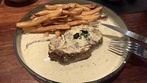 When informed, we were asked whether they should reheat the steak again (!!!), or the dish remade. We let them know a steak that has sauce over it and preciously been cut would be grey matter reheated and to please remake the dish.