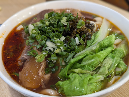 Read moreI had very fond childhood memories of the renai store but i have to say that this store is slightly below the quality of the original. The half beef half tendon sliced noodle soup had good soup flavor, an appropriate amount of taiwanese sour veggies, and great noodle texture. The slight downside was overly soft tendons (maybe some like it that way but i like a little bit of chewy texture) and beef that was too thinly sliced (but that is their style). We had the veggie grilled pancake and that was quite good (i remember loving their beef version but didnt go with it this time). My wife has spicy and sour sliced noodle soup. It was ok and also arrived luke warm so we had to ask them to heat it up a bit. Lastly, we ordered spicy dry wontons and they were good but flavoring is slightly on the sweet side. Overall still a...
