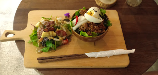 Atmosphere: laid back. The place is well designed, with big open wide outdoor seatings, and the indoor space punctuated by a big pantry area where you see your food being made, and two tables with 4 chair seatings, scattered seating for 2s or for bigger groups.