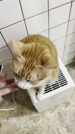 Anyway, if you are ever in the area, this cafe is worth a visit. It is such a cosy, quiet place, and the cats seem to be healthy and happy. The storefront also says which cats are “on duty” for the day. I only saw two cats on the cafe floor, but you can enter a basement floor to meet the others.
