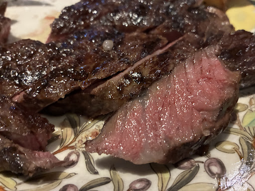 The fennel orange salad was fresh and unique for a steakhouse. The 12 oz Flannery rib eye was ordered rare but came out more medium. It had a great crust with minimal grey band underneath, showing the chef’s skill on the grill.