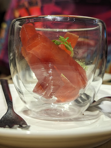 Read moreThe restaurant poses as a five star dining experience, but sadly can’t deliver its promise. We had the set dinner for two people with extra drinks. The salad was loveless, with corsely cut lettuce and a dressing that tasted as if it was pure vine vinegar poured over the salad leaves. The only dish that impressed was the mullet roe with potato mash that came as a starter. The pickled jellyfish was more for the adventure than truly fine dining. The restaurant was supposed to be open until 9:30 on/21:30 with last orders at 7:30pm/19:30 according to the posting outside. We came and ordered before 7/19:00. Yet the waiter already brought the bill and asked us to pay when we just had received the drinks. That is really bad manners and rude. The dinner generally felt very rushed. Service wasn’t attentive at all. Felt more like a cheap diners with all the plates being thrown on the table at the same time, instead of every dish at its own pace. We were disappointed by...