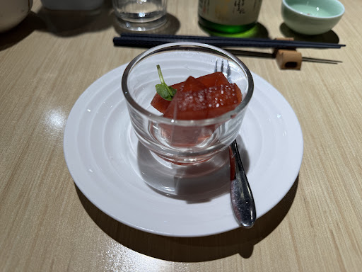 I came here to celebrate my birthday with my fiancee, and they certainly made my night 🥳 The decor was beautiful, the food was delicious, the price was reasonable, and the service was swift, fantastic, and very foreigner-friendly! We ordered the Mullet Set ($660), Abalone with Mayo ($330), and Prawn Salad ($260). With a service charge of $125 (not sure if this is 10% or a flat rate?), our total was $1375. The Mullet Set started with a seasonal Melon appetizer which was a great start to the meal, and arrived very quickly. It had a firm yet soft texture and great flavor. Before we even finished, we were greeted with our prawn salad - there were plenty of vegetables cut to the perfect sizes, and a delicious vinaigrette dressing that paired wonderfully with both the vegetables and the prawns. Next came our 9 small portions of various sides, which matched the photo in the menu. As we worked on this board of food, we also received our mullet roe fried rice, miso soup, and abalone! It was very fun having so many options to pick and choose from as we filled our bellies 🤤 the 9 sides were all fantastic, and was a great variety to sample a lot of the dishes that The Carp has to offer. Everything was so flavorful and I was very happy to experience several different uses of mullet roe, something I had not tried much of before. The only thing that could be improved is that the "seared scallops salad" could have more sear on the scallops, but I'm just being picky 🤣 it was still delicious. Our favorites were definitely the pickled black fungi, the mullet roe and nuts cheese, the chicken, and the pork neck! The miso soup included a good amount of seaweed and tofu, and the fried rice paired wonderfully with everything else on the table. Out of everything, I think the abalone was my favorite! It was cooked perfectly, and went very well with the fried rice as well. I would like to see it paired with a different sauce than mayonnaise, but it still worked very well together! I just think the abalone deserves a bit more love because of how good the meat itself was. Finally, after we finished our main course, they cleared our table as we waited for dessert! I had mentioned that we are celebrating my birthday in our reservation, but I was not expecting anything special. The mullet set already includes a plate with 3 desserts, but they went ahead and surprised us with a second plate so we each had our own set of desserts! The desserts were delicious, and we loved the creativity of the mullet roe cookie! In the end we got to taste 17 unique dishes, and came out full but not overwhelmingly so - the perfect amount to enjoy every flavor! Thank you for the...