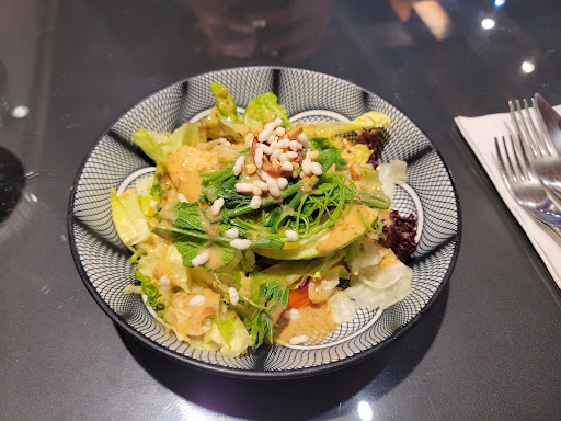 第一道———綜合窈窕沙拉🥗 裡面是綜合生菜還有一些水果、特調的沙拉醬還+了一點花生粒粉 #真的很適合窈窕的我😆 只要醬調的能讓我吃下去的生菜沙拉 #一律給過