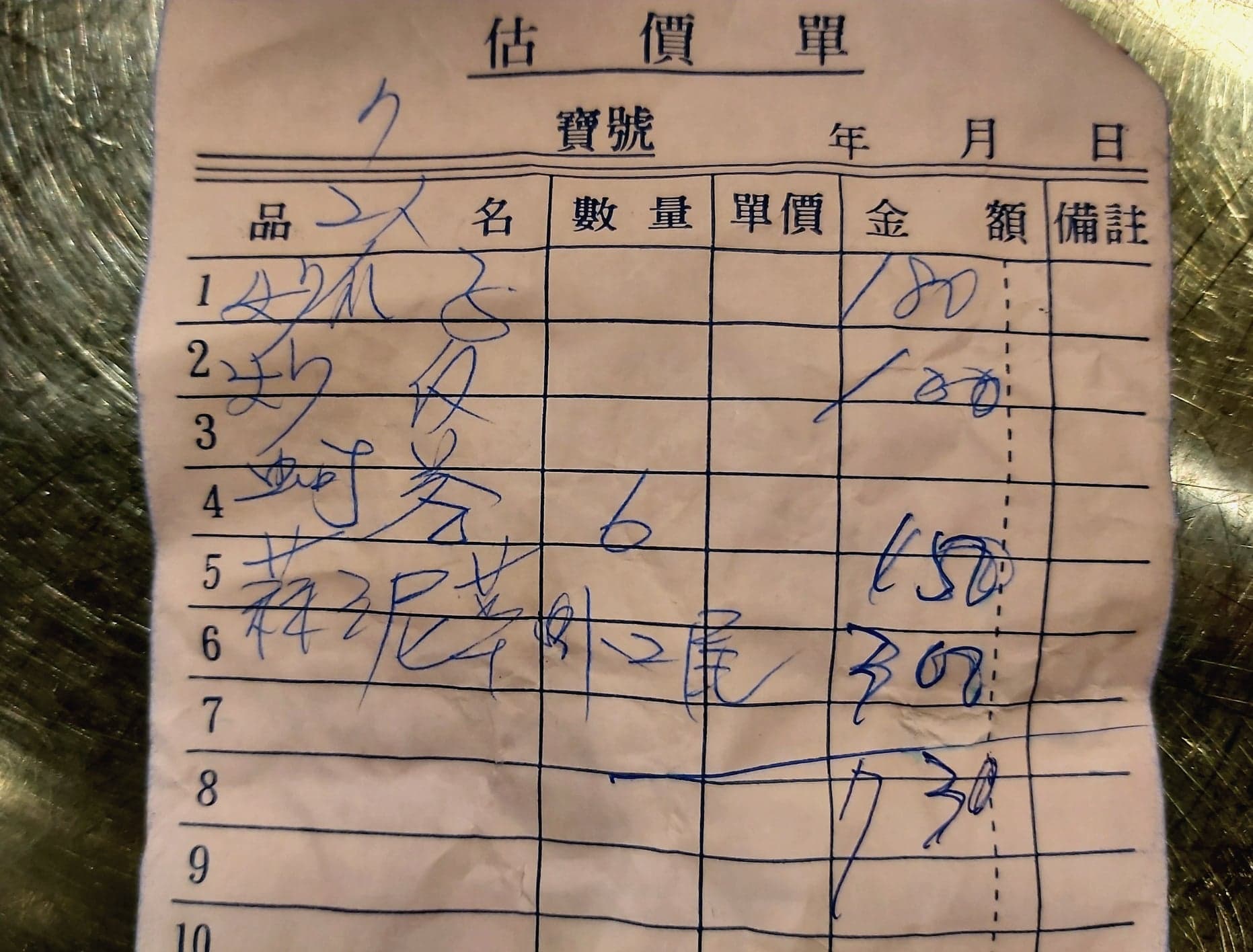 提供用餐的參考價格 1.海瓜子(180元),沒有幾顆,很瘦也不好吃。 2.蝦仁炒飯(100元),沒有幾個蝦仁,炒的還不錯吃(濕式炒飯),份量可供一個男性成人吃飽,或情侶分著吃然後配其它菜。 3.蚵捲(一盤6個150元),皮薄,本身沒吃,無法評價。 4.蒜泥海草蝦(1隻150元,至少點兩隻以上),蝦子大隻,肉彈牙,很新鮮,調味清淡(雖然有蒜泥),不過吃鮮味就是這樣。