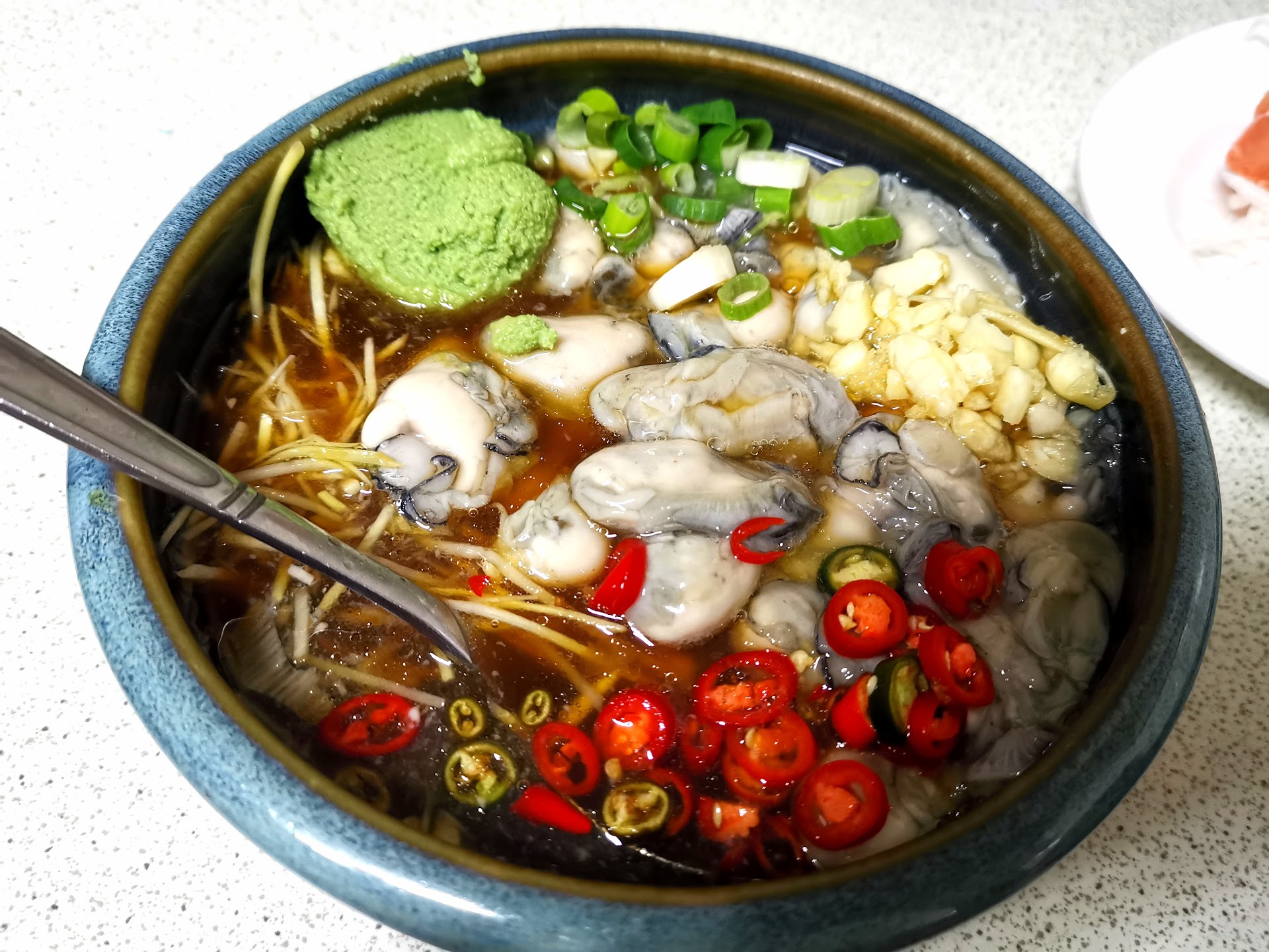 Read more吼~金駕五告賀呷🥳🥳🥳尤其是這咕讓人日思夜夢的正港東石蚵!Oh~捶你蓋固,今阿日吼哇燈丟啊吼!啃~來來來~大口大口的給他吃下去(看到現撈A海鮮就會出現南部A海口音😎)話說回來,這川燙過的東石生蚵保留了鮮甜Q彈的口感搭配seafood(師傅) 的獨門醬料,味蕾中融合著酸甜辣嗆,加上寶寶心裡的苦,就是人生的滋味,將鮮蚵一口放進嘴裡OMG我都飄起來了,這不是人間美味,這是天堂吧! 不單單是以上的這道東石醞將鮮蚵,今天還點了一盤旗魚vs....