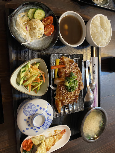 環境主打古早房子,但缺點也是不少 1.進去要先拖鞋,拖鞋不是重點,重點是廁所不在主棟裡,等於你進去後想去廁所還得穿了鞋子走到外面,天氣好的時候就算了,下雨天還要這樣跑實在很啊雜,既然當作餐廳就要考慮顧客便利性,以前房子設計是這樣但也應該新舊兼容 2.下雨天玄關拖鞋處,因為大家踩水弄得原本可以坐著穿鞋的地方都是水,老人家站著也不方便穿鞋,下雨應該要常注意玄關的積水問題,踩到也容易滑倒 3.不知道是我們包廂座位比較低的關係,吃飯一直聽到走廊上咚咚咚的走路聲,因為是木頭地板聲音又更明顯 4.包廂燈光昏暗也不通風而且還超多飛來飛去的不明蟲子 5.桌子兩張併一起,長度居然不同導致坐在左邊位置的用餐區塊會被坐在左手邊那排的人吃掉,吃個飯很擠 說完用餐環境要來說餐點的問題: 1.簡餐一份約320元,唯一比較好吃的是味噌湯 2.炸茄子沒熟!!!!我們家10個人的每個人的都沒熟!!!!!!!!!炸蝦麵衣超厚而且炸起來放很久,麵衣都軟爛了 3.冷冷的冬天,甜點紅豆湯居然是冰的....... 我不太懂這麼冷為什麼是上冰的紅豆湯 4.松阪豬的醬...