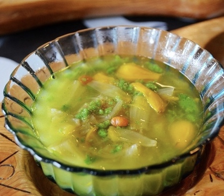 家鄉在這的我,要不是此次同學邀請到這兒聚餐喝咖啡,還真的不知道這家精緻小店的存在呢! 一到門口,看起來是一片綠意盎然,又充滿著原木布置的原民風格氣息; 店內的環境其實蠻簡單的,幾張桌子,舒適溫馨。但是啊,就是會吸引人的視線不由自主東張西望,因為有太多的雕刻物及擺飾讓人觀賞、拍照! 用餐方式呢:都是採用「套餐」形式的,價格都落在300元上下,附有:前菜~南瓜核桃焗烤、蔬菜沙拉、手卷、湯物,飯後有飲料。 餐點完全是親自料理,可不是調理包,等待時間是需要的,也非常值得等待! 一整個讓人期待上桌的前菜呢?湯品、沙拉、手卷跟著帶點辣味的九味醬,一起擺在原木的餐盤上桌,光是視覺效果就讓人頗為享受! 開動囉! 先喝上在地盛產的湯物:黃色的食材,一看便知道是「麵包果」(在地人才明白的啦),加上「小魚乾」,看起來平淡無奇,喝起來卻有著蔬菜的甜味,很清爽又很特別的一道湯品!(可能只在花蓮才吃的到呦) 田原蔬果拼:裡面無疑是非常新鮮的野菜及特殊的食材,沙拉醬是蒜泥九味醬,實在太絕妙了;花椰菜、當季水果、山蘇、玉米筍、大扁豆、荸薺、小番茄、芭樂、南瓜⋯等等,實在讓人滿足至極了! 再來這個捲餅...九味沙拉手卷:外皮像是蔥抓餅(麵皮)具備了彈性與韌性,也有些厚度,讓飽足感提升。 裡面捲了多種蔬菜,吃起來很清爽,可以沾上特調九味醬,吃起來帶點辣、鹹,那種鹹香滋味真的很特別,搭配手卷或是蔬菜沙拉吃都別具風味。 另外~南瓜焗烤: 濃郁的南瓜泥餡,添加了培根片、起士、鋪上了蘋果,味道完全不會不協調,很好吃。 三道前菜及湯品都這麼豐富精采,餐點份量也厚實,不由得開始好奇主餐呢?! 南瓜燉牛肉(各點不同主餐,交換著吃):主餐的顏色看起來粉嫩粉嫩,很有spring的樣子,吃了一口就很驚艷,肉嫩不柴、南瓜鮮甜、紫米香甜Q! 同學點了:梅干扣肉(其他來不及記載)肉不厚也不油,瘦肉片居多,梅干味道很香、不死鹹,相當開胃下飯耶,是非常樸實好味的梅干扣肉也擄獲我的胃。 餐後的飲料有咖啡、紅茶、奶茶、綠茶、果汁..等可以選擇, 老闆娘力薦「自家」現打的綜合果汁,這肯定要來一杯的呦~ 有蘋果、甜菜根、鳳梨、奇異果⋯約有5~6種水果在其中,總之小小一杯,讓人精力充沛! 這一餐真是豐富、美味又吃得滿足; 各位大大來光復,一定...
