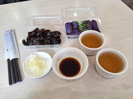 店內的自助服務也很方便,姜絲、醬料、碗筷、調味料、醬油、醋等都可以自己取用,店裡還免費提供熱麥茶,可以依照自己需求拿取,但要記得不要浪費食物和飲料。這樣的自助形式,讓用餐過程更自由,感覺很舒適。