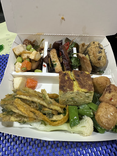 以下推薦幾道有特色or覺得好吃的菜色~ -----(全素)----- ✔️芋頭糕、蘿蔔糕:綿密有Q度,很快就被夾光 ✔️天貝:因為較貴,平常不容易在便當店看到 ✔️黃金泡菜:清脆爽口開胃 ✔️麻辣臭豆腐:豆腐相當juicy入味 ✔️百香果蓮藕:酸甜開胃