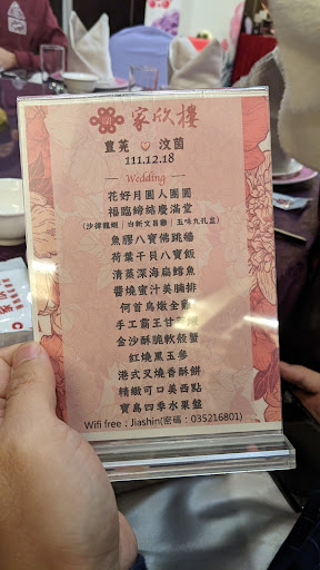 Read more家欣樓位於新竹市經國路,日前曾經一度歇業,搬遷後恢復營業。備有停車場可供賓客停放,但停車格畫得很窄小,格線也不平行,很考驗停車技術。 本次用餐是參加親戚婚宴,場地是二樓最裡面的廳房,可容納約15桌,紅毯很短,大概30秒內可以走完;送客也在廳房內進行。 服務人員年齡看起來都蠻大的,上菜節奏須再加強,一開始上菜上太快,新人二進之前有一段上菜空窗期,餐點則是都中規中矩。 本次用餐最煩人的問題是,每桌有送一瓶紅酒,因為整桌只有我1人喝酒,所以只倒出一點點,看起來像沒開瓶,結果有一個服務人員一直跑來說紅酒如果沒開要收走,從上菜前問到送客拍照都拍完了還要問,啊就已經跟他說過我們有喝了,還...