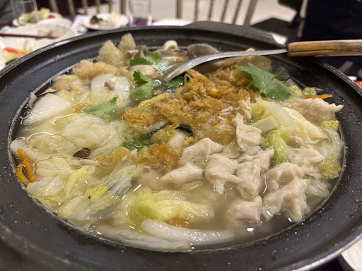 菜色算是不錯無論是火鍋還是清蒸鮮魚,食材都算非常新鮮,其中結合客家小炒的油飯算是蠻特別的一道菜色。