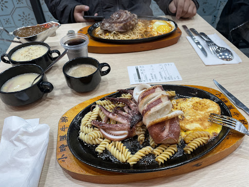 Good value steak house with unlimited soup, toast, drinks, and ice cream. A few years ago this type of steak place was common, but now they are getting harder to find. This is one of two branches in Hsinchu that are part of the same chain. Although they are a steak place that have salmon and white fish on the menu. I chose the salmon which was fresh enough. If you don’t have high expectations this place is ideal if you’re hungry. I noted that the other branch asked me if I wanted noodles or pasta, and this branch didn’t, but I guess you can ask (the other branch also offered a second portion of pasta but again maybe...