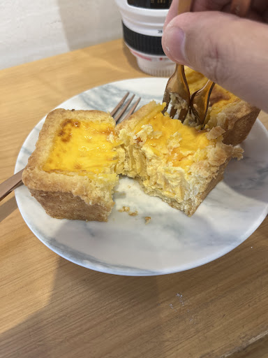 店員態度很和善,即使點了一份金磚布丁,要分食,也是很主動提供額外的叉子! 很棒:)
