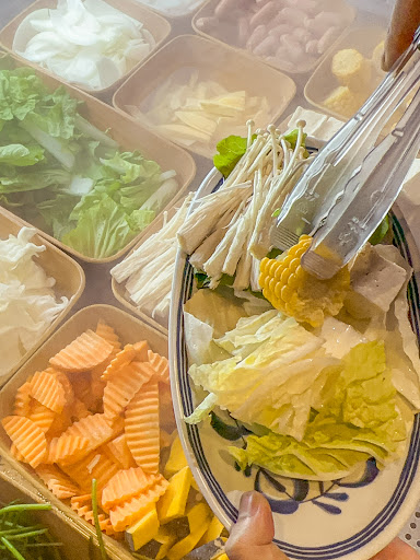 除了湯頭值得推推之外, 自助區還有好多火鍋料能選!還有我最愛必吃的米血、豆皮、老油條等等✨ 主食除了蒸煮麵、王子麵、冬粉,我還想要大推店家獨家調製的咖哩醬、肉燥淋上飯好好吃🤤旁邊還有準備和風海帶絲&柚香蘿蔔小菜可以搭配🍚 蔥油醬,是吃燒臘會附的那種味道🤩 拌著飯麵❗️超❗️讚