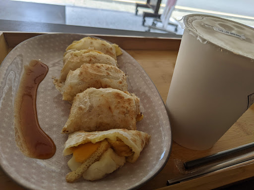 Best Dan bing I've had in Taiwan. Not just hsinchu but Taipei as well. Got the hash brown egg cheese dan bing omelette pancake. It was amazing, potato so fluffy.