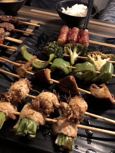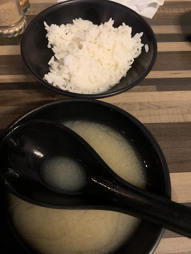Read more內用白飯味噌湯吃到飽,飲料另計 味噌湯不錯喝~多了白飯讓串燒當正餐也不致於吃不飽~ 本身調味都偏淡,沾胡椒鹽會更好吃,基本上我除了客家鹹豬肉其他都沾了,以下分數以-10~10分計 🌟花椰菜20-量不多,花朵處吃了滿滿醬料稍沾一點海鹽超好吃,10分 🌟青椒20-已之前很不喜歡青椒的我來說,他處理的很好欸,青椒味沒那麼重,相對甜甜的,我真的覺得這家烤蔬菜類很厲害,10分 🌟杏鮑菇20-看起來差不多一隻的量,調味也好好吃,而且很多汁,9分 🌟大魷魚100-烤起來各個部位都一樣的多汁,幫忙切好配飯很方便,連鬚鬚都沒燒焦,有機會可以吃,8分 🌟青蔥豬肉串30-經典好味,多汁又帶有蔥微微辛辣感,8分 🌟鹹豬肉150-超級鹹,一定要配飯,加了檸檬好好吃,8分 🌟奶香烤扇貝120-新鮮,湯汁有奶油香,不錯,7分 🌟三層肉60-有烤出豬油特有香氣,肥肉處嘎茲嘎茲的,配胡椒鹽超讚,但我覺得可以不用特別加檸檬,膩了再加,7分 🌟皎白筍40-很難入味的皎白筍可以保持濕潤又有味道我覺得可以欸,5分 🌟大腸35-脆脆香香的,沾胡椒鹽很棒,5分 🌟雞膝軟骨40-脆脆的,男友很愛,3分