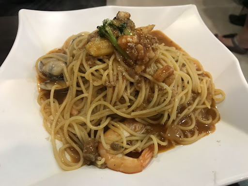 Food is not the best but due to its big portion and cheap price, definitely high cp value! Price includes soup, bread and drink. Take out available, also possible delivery through food panda. If eat inside, free refills on soup and drink. Also can add free extra spaghetti for those with big appetite! They have a ordering machine outside, must order first before going in. They dont take...