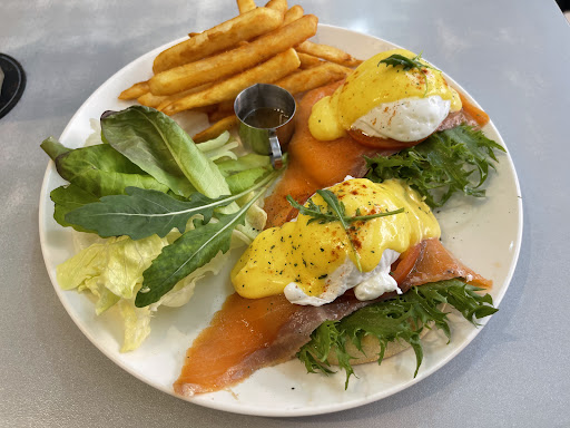This Restauant has been around for years and I’m glad to say that the food remains excellent. Ordered the smoked salmon egg Benedict and a tiramisu iced tea. There was a generous portion of smoked salmon, plenty of very fresh salad, and a vinaigrette served in a little jug. The only thing to note is that they put Dijon mustard under the salmon (I wasn’t expecting that or I would have asked for one without). The iced teas was nice and creamy, although a bit less coco powder would have made it less messy to drink. The total came to 320 for both items which seems good value considering the quality. You do have to get your own cutlery and napkin from the desk by the door. I’m not sure why this has been introduced as silverware was on the tables before. Going to get stuff yourself makes the service feel less attentive, but they were friendly enough. Definitely somewhere I’ll be...