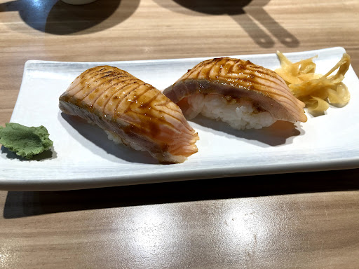 🔹點餐餐點: 炙燒鮭魚握壽司:鮭魚很大片很新鮮,炙燒程度恰到好處,壽司米本身也拿捏的很好,CP值很高,推薦。 胡麻野菜沙拉:以水果切丁、洋蔥為主,淋上胡麻醬很清爽。洋蔥會有嗆辣味,小孩比較不喜歡。比起這道,我比較喜歡大豆苗這些蔬菜類料理,可惜近期去沒有蔬菜類可以提供。 炸蝦天婦羅:中規中矩的日式天婦羅,沒與其他正統日本料理店有太大差異。 鰻魚丼飯:非常推薦,以280元的鰻魚丼飯,實在很少有這種水準。孩子的最愛~ 鮮蝦蘆筍手卷:很好吃,手卷內的沙拉恰到好處,美乃滋量也很剛好。 魚蛋沙拉:不會烤的太乾,上方還有魚軟點綴。旁邊附上生菜和小黃瓜,擺盤相當用心。 炭烤牛小排:胡椒偏多,有點偏辣。肉品品質不錯,煎的功力也ok,但沒有特別推薦。