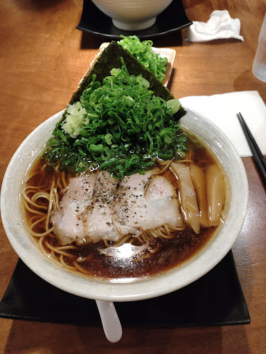 [麵]這次點(日式濃郁軟麵\麵醬油拉麵)(日式濃郁普通硬麵\蔥醬油拉麵)外加30塊的蔥。醬油配料大致是:海苔一片、薄叉燒兩三片、些許蔥與少許筍干。醬油湯頭是略濃郁的焦香柴魚等調味。蔥30元真的很多又很新鮮。