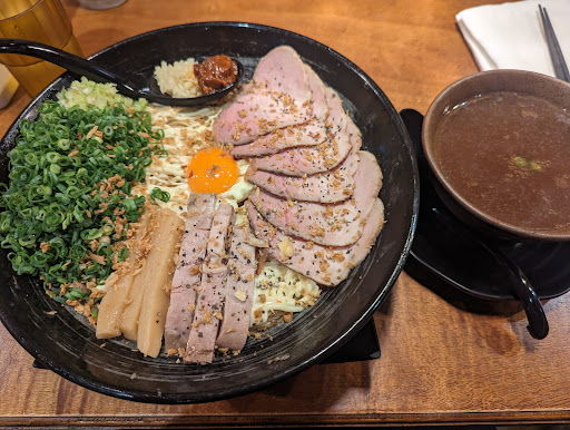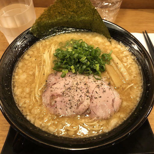 [個人感想](湯頭)剛入口是充滿燒焦苦苦的柴魚等調味的濃郁湯頭,有些許勾勾與略油的口感,喜不喜歡因人而異。(麵條)為稍捲的細麵,口感很好,麵味亦可,雖然拉麵整體吃到是最後本人不覺會鹹,可能配合台灣人口味調淡,但叉燒上的黑胡椒卻會影響湯頭口味,特別是會增加本身略苦的湯頭,加重更重複雜的焦苦味,也許有人喜歡這味道吧,下次想去試試豬背脂,畢竟一...