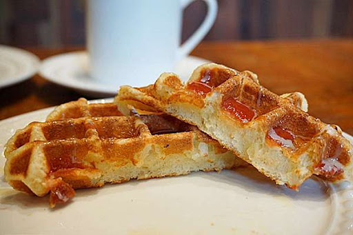 🔸原味鬆餅 $160元 他們家鬆餅真的推薦必點 鬆餅是酥脆的口感,搭配的鮮奶油不油不膩,而且糖粉真的給好給滿,重點還有他居然連冷掉都不影響酥脆的口感,還是好吃,這個推阿!!!