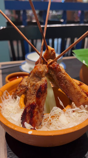 -評論開始- 1.帕泰家甘藍手捲(中):我不知道是不是因為是『中』的份量或是說小菜他四人份的set可以點兩種所以份量比較少(大概就兩個男生的份量)。手捲的味道是這次用餐體驗裡面比較驚豔的,裡面香茅的味道異常強烈(香茅有點像是主角蓋過雞肉)這裡無褒貶,我自己是喜歡的,不喜歡香茅的可能要注意。再來就是手捲的部分我會希望店家可以先捲好,不是給一小咪咪讓大家分,在那邊你讓我我讓你吃的綁手綁腳,蠻困擾的... 2.蝦醬芥蘭: 不難吃但很油,蝦醬的味道有但不是很明顯,有點被魚露蓋過去,吃到最後幾根真的吃不下去菜梗跟菜葉泡在黃油游泳池裡面,看了沒什麼食慾。 3.鳥籠芋絲炸雞翅: 現炸的普通炸雞翅,油也可以看出來不是什麼新鮮的油,雖然跟醃料也有關但雞翅就是很黑。炸物這種東西現炸的就是不會難吃到哪去,基本上也都有個7,80分。可能芋絲可以稱讚一下份量還可以這盤到達3人份。 4.炭烤嫩煎豬排: 正常水平意料之內的味道,上菜的時候感覺不夠熱,有點放涼。 5.炭烤雞肉沙爹串: 正常水平意料之內的味道,一人一支份量正常,唯一可以讚許的地方它的醬料蠻特別的有個花生醬的味道。 6.辣炒珍豬: 正常水平意料之中的味道,份量大概2.5人份。 7.泰味金沙魷魚: 正常水平意料之中的味道,有金沙有魷魚,有些人(我)可能會期待他是用炸的,沒有,是用炒的。 8.椰香黃咖喱雞: 意料之外的味道,這跟你想像的黃咖喱雞可能會不一樣,不是什麼重口味椰奶爆棚濃稠的感覺,如果你期待是這種,建議你不要點。雖然也是重口味的菜但他們家得比較清淡(水放很多),然後肉質的部分跟前面幾道豬肉料理比雞肉不是很嫩。 總結: 我覺得這次體驗下來感覺就是東西每一份都少得很可憐然後很貴,只能一直配飯配飯配飯,好啦平心而論他的飯我覺得比瓦城的好吃,如果說要以連鎖店去比的話。像這種一樣的味道下一次我可能會選擇yabi,有同時吃過yabi跟帕泰家的應該就知道我在說什麼,不要被米其林的title唬到了。對了他們的裝潢還不錯,只是桌子我不懂為什麼要設計成高高低低的起伏(也有可能是我們這桌而已),服務生自己餐盤都不好安排位置,更何況是我們用餐的客人 附註: 冬蔭功海鮮湯忘了告訴大家,這是我覺得這次體驗裡面最雷的,味道沒有層次只有很直給的嗆辣,你喝不到海鮮的鮮甜也喝不到青檸葉、魚露的味道,抱歉講喝不到有點過分,主要是都...
