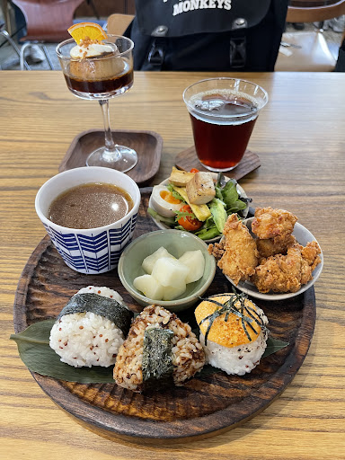 Read more飯糰三粒我還要炸雞,玉米筍有些微的油耗味;小小的綜合生菜,和風油醋?胡麻醬?不太喜歡它的沙拉醬,除醬油鹹味稍重外,食難分辨出醬的味道屬性? 已煮的有點過熟的溏心蛋,嚐起來味道類滷蛋,蛋白的表面滋味偏鹹且帶點微微的八角味 不錯吃的醃漬柚香蘿蔔,味道微酸微甜還帶點柚子皮的微苦,口感極脆但有濃厚的生青味 炸雞的肉質實在是太乾,完全毫無肉汁,尾韻還帶有一絲肉腥煮熟後的雞油臭味,撥開麵衣下的雞肉表面呈現著黃色色澤,外層的麵衣則是無調味,油炸的有微酥脆感,沾裹微辣的??美乃滋入口有驚嚇感,超奇特的味蕾衝擊,個人完全不喜這難以描述的味道 三粒飯團:白米黎麥圓飯團,米飯煮得粒粒分明,內餡則是有辣度的拌炒黃玉米粒,玉米粒像似冷凍食材形塑已乾扁,吃起來普普且毫無玉米甜味,而拌炒的味道不似沙茶不似咖喱也不似炸醬?唯一嚐到的是重鹹味,但恰好能帶出白飯的甜味;炙烤明太子美乃滋飯團,醬中的蒜味有夠濃厚,搶了調和明太的味道,還會吃的到它的顆粒,稍重的調味與無味的藜麥飯團結合讓味道變得恰到美好,是唯一覺得好吃的。甜甜的醬燒柴魚酥拌合的三角飯團,很是復古的口味,倒是蠻討喜我這個古早人,讓我想起了小時候,一碗電鍋裡溫冷的白飯撒上滿滿的柴魚酥,扒完一碗就會非常滿足的小幸福感 最後是那杯表面佈滿了浮油的不知名熱湯,裡頭有已燉煮到變色無味的馬鈴薯碎塊和美白菇,慢慢的淺啜了幾口去盡力地感受,雞湯?蕈菇?赤味噌?湯頭如水般的平淡味道,喝起來就只是甜甜的 選了一杯有荔枝味的 衣索匹亞 厭氧日曬 龐貝...
