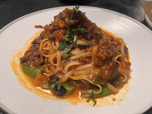 Beef pasta: 3 star, soaking in sauce, wilted garnishes. Sauce taste like its out of the can.